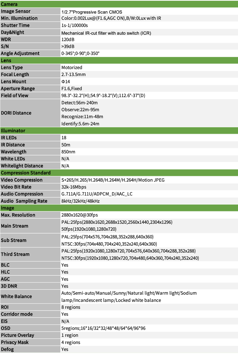 Spec:I5/A/E/Y/M/H/2.7-13.5mm/V4.1