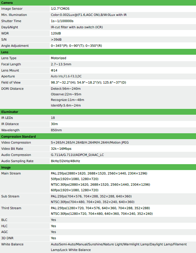 - – Kolor:0.002Lux@(F1.6, AGC ON), B/W:0Lux z IR
