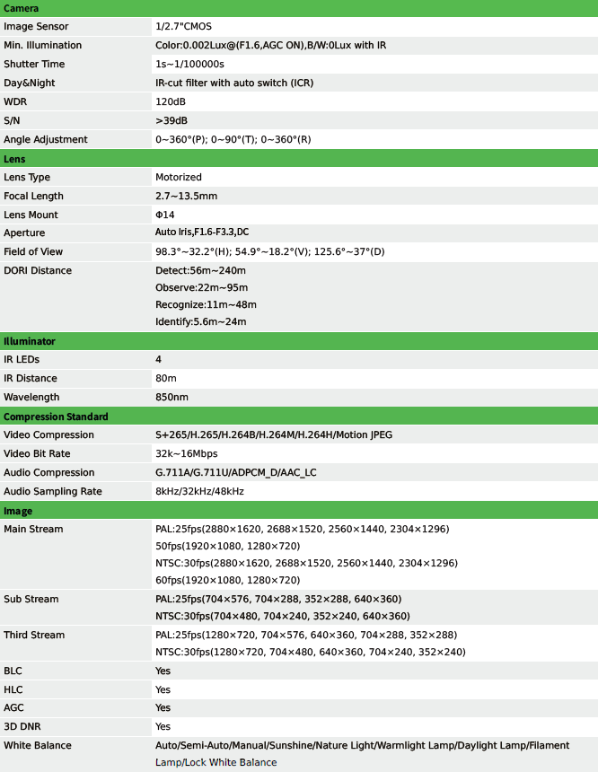 Spec:I8/A/E/Y/M/S/H/2.7-13.5mm/V4.0